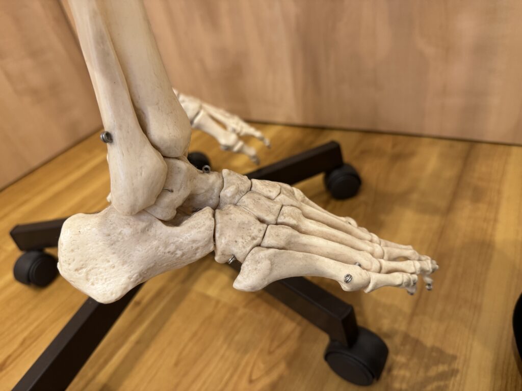私どもリ・サンテでは、骨格ドックの検査で足元の骨格バランスを細かく確認し、骨格の調整で脛骨や腓骨、踵骨などの歪みを整えることで、筋肉への負担を軽減していきます。骨格が整うことで血流も促され、足の軽さや動きやすさを実感される方も多くいらっしゃいます。