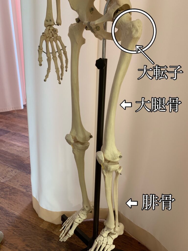 股関節の動作を司る筋肉は骨盤、大腿骨等の骨に付着しているため、骨盤まわりの歪みは膝や股関節を含む大腿部の動かしにくさへと直接的に結びつきます。骨格の歪みを検査する骨格ドックと骨格の調整がセットになったメニューはこちらからご覧ください。